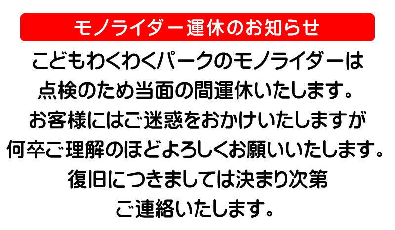 「こどもわくわくパーク」ではモノライダーなどの遊具・川遊びもあり、