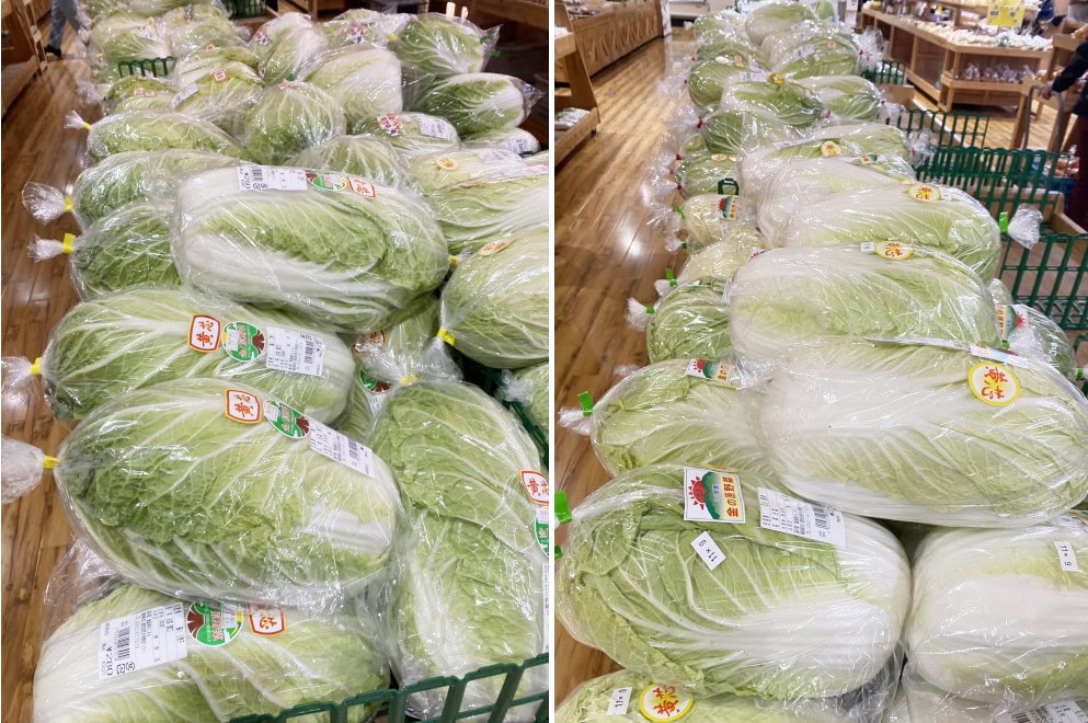 冬野菜の主役野菜が棚にずらり!今が旬の「白菜(黄芯)」は白菜の品種で、
