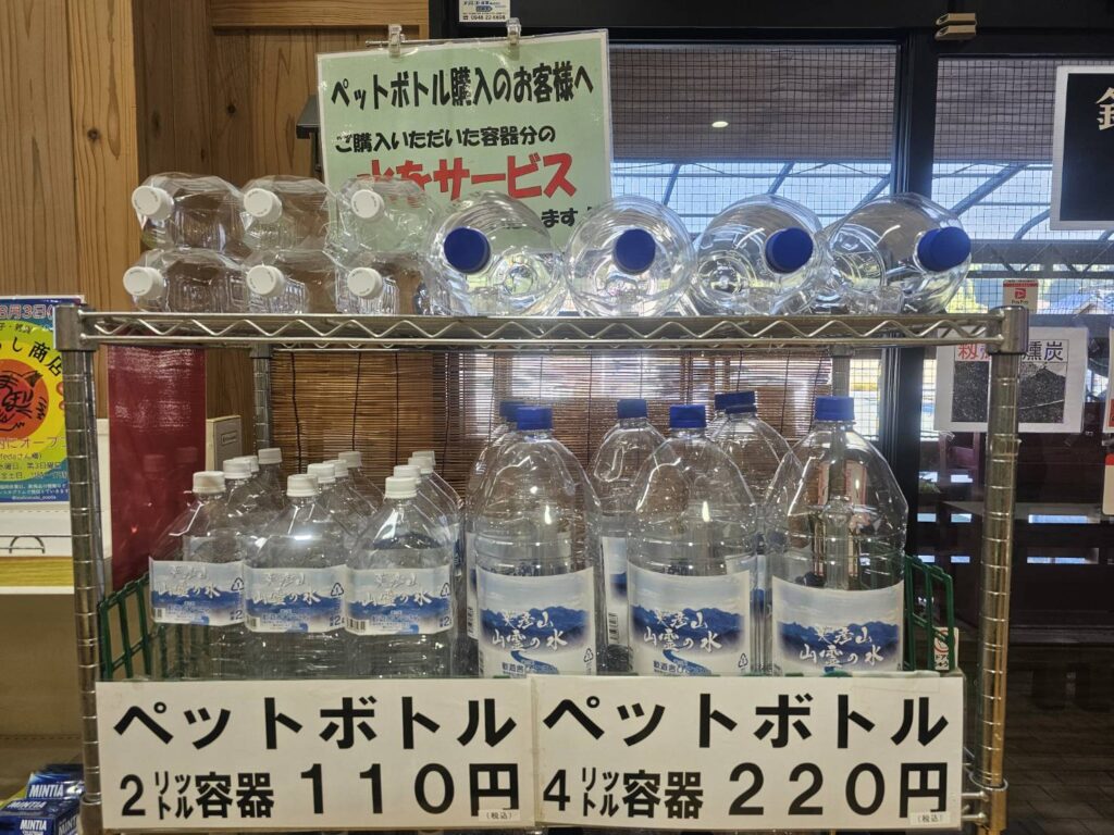 歓遊舎ひこさんでは地下60mから汲み上げた「山霊の水」を汲むことができます。