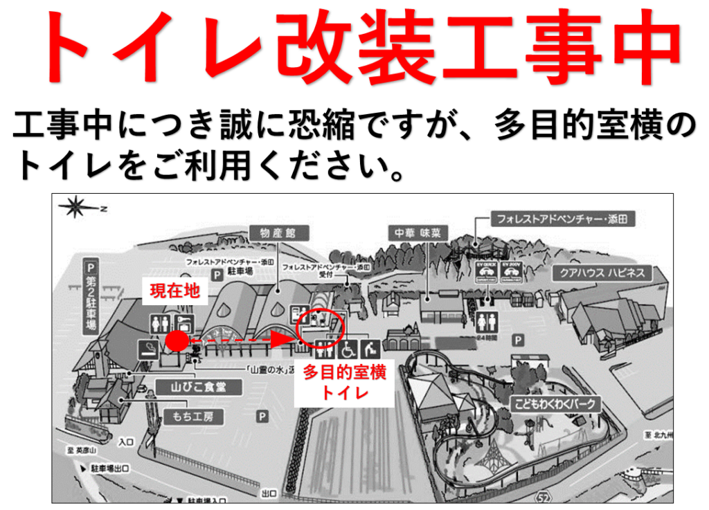 改修工事期間中は正面より右側の大型トイレのご利用をお願いします。