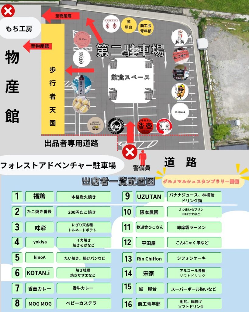 地鶏の炭火焼き、たこやき、カレー、スイーツなど